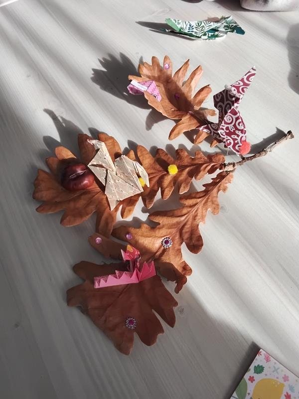 Fleurs délicates, animaux élégants et formes poétiques ont peu à peu pris vie à partir de simples feuilles de papier. Un moment apaisant et stimulant, favorisant la concentration, la motricité fine et surtout le plaisir de créer ensemble.
