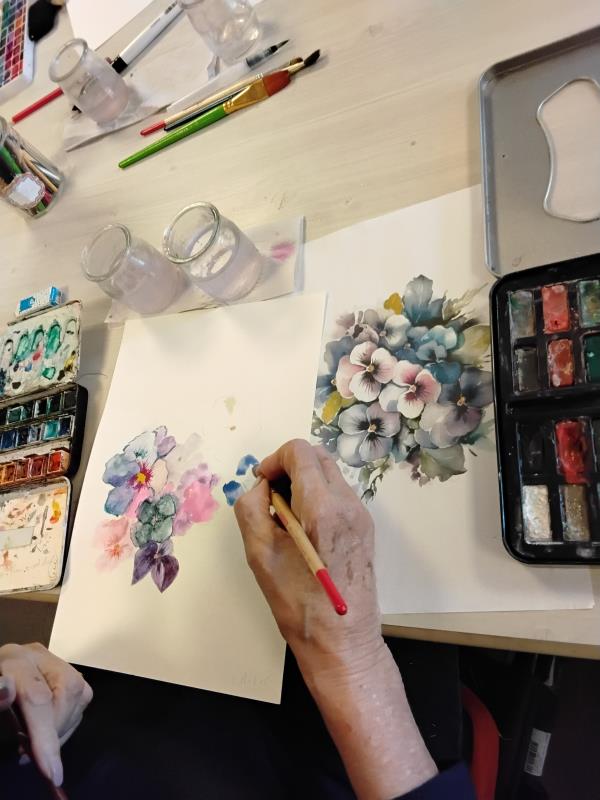 Chaque mercredi, les résidents s'épanouissent en peignant de magnifiques tableaux à l'aquarelle.