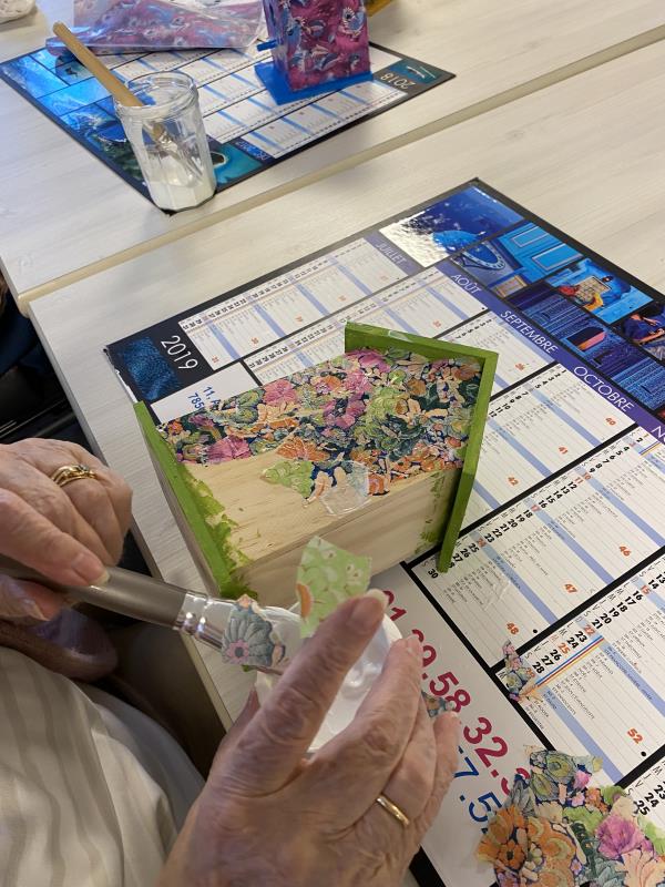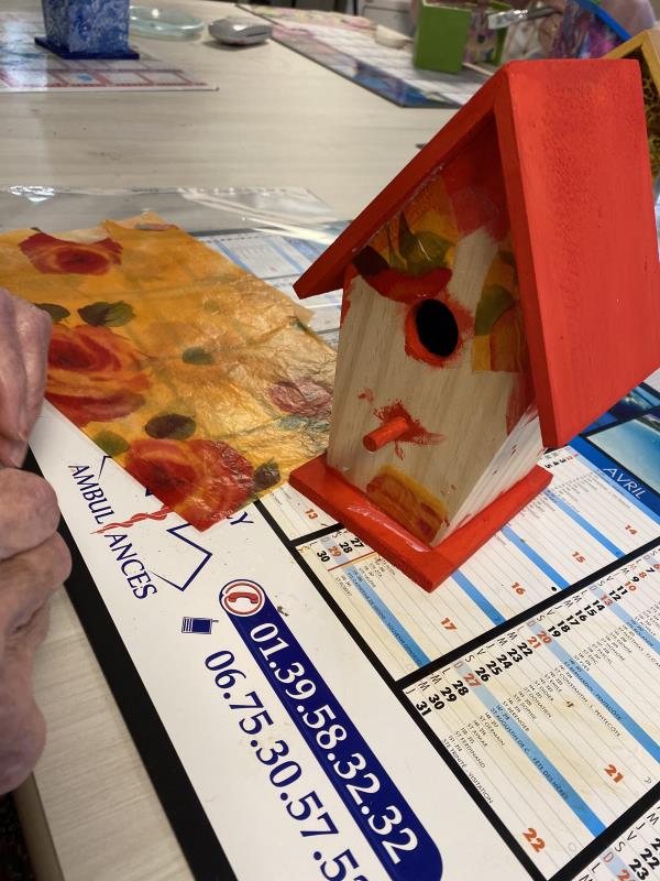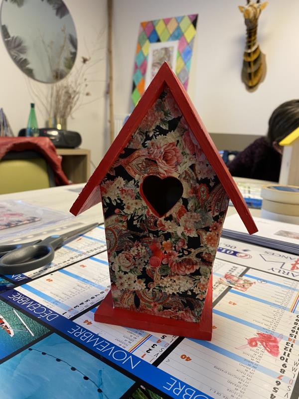 Cette semaine, c'est la réalisation des cabanes à oiseaux qui sont au programme pour décorer la terrasse de la résidence.