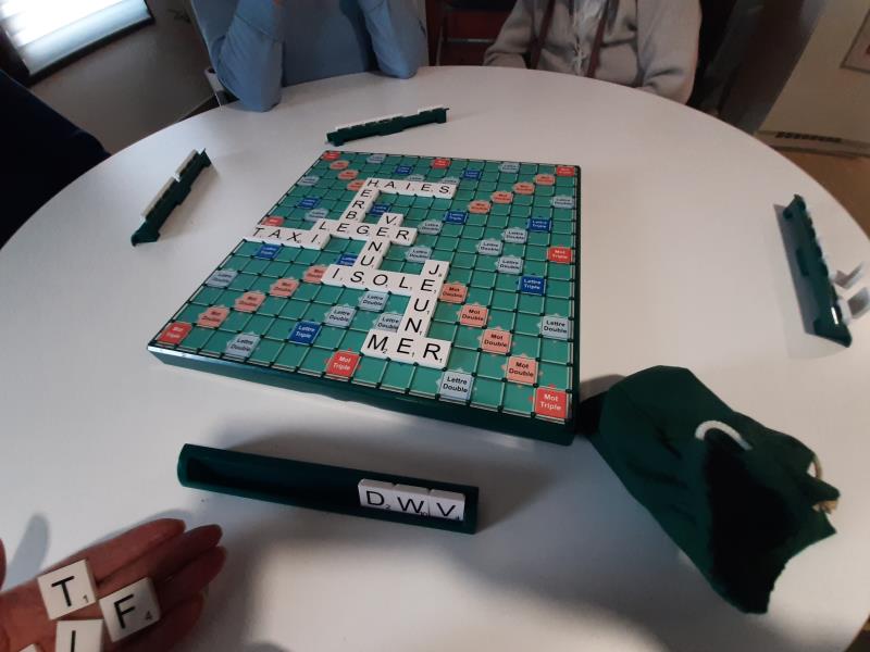 Chaque semaine, Myriam vient jouer au scrabble avec nos résidents.