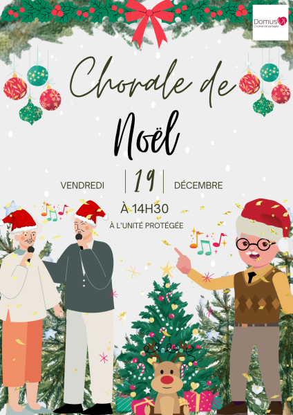 Résidence de Maintenon > Actualités > Chorale de Noël à la résidence de Maintenon Chorale de Noël à la résidence de Maintenon Publiée le 18/12/2025 Nous vous attendons nombreux. L'équipe de la résidence de Maintenon
