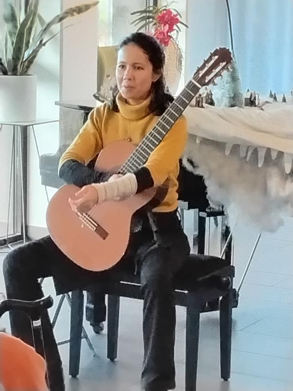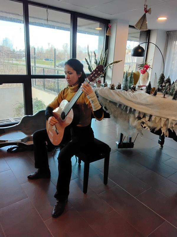Aujourd'hui, une nouvelle bénévole, Mme G. , est venue à la résidence de Maintenon pour faire un concert de chant et guitare pour le plus grand plaisir des résidents.