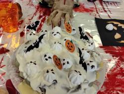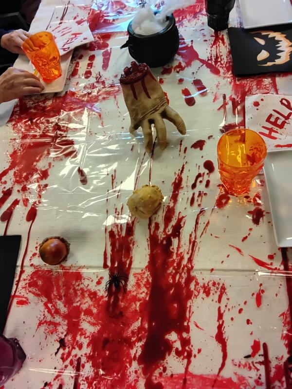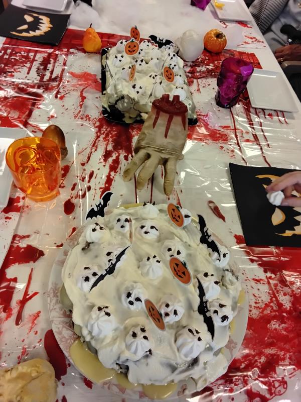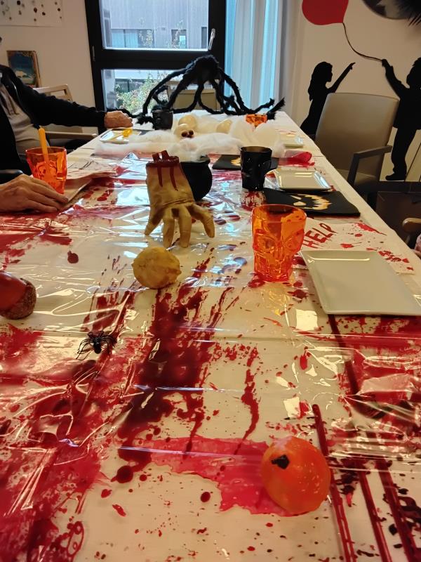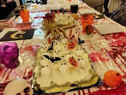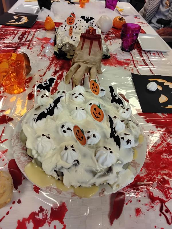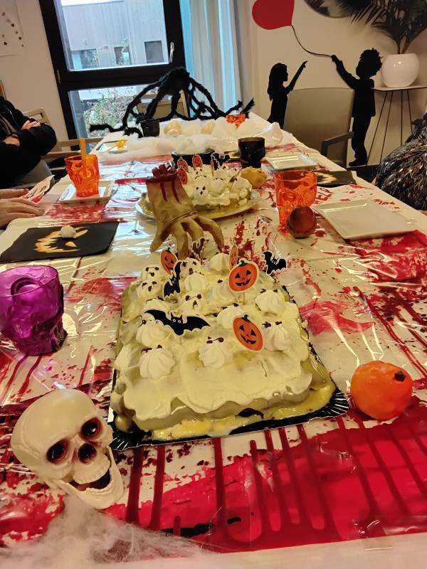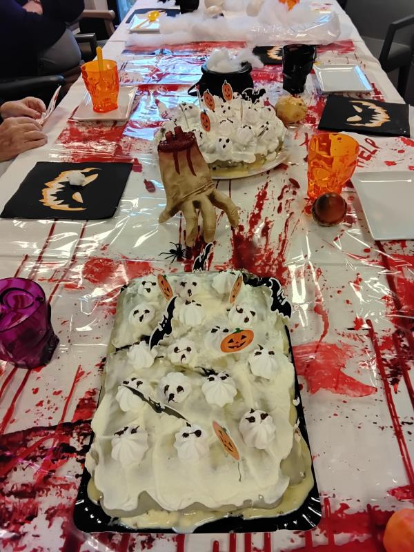 Dès le matin, Pôme notre animatrice avec les résidents, ils ont commencé à préparer les gâteaux pour le banquet d'Halloween.
