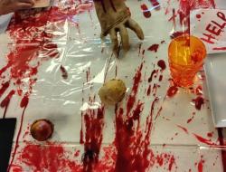 Ils ont terminé la décoration cet après-midi et installé notre table de sorcières et sorciers pour la dégustation.