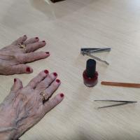 Publiée le 28/01/2022Le terme Manucure du latin "manus" (main) et "curare" (soin) signifie bien que cet acte esthétique est également important dans la prise en soin de nos résidents. Chaque semaine, nos équipes prennent soins des mains de nos résidents, que cela soit par des massages ou par une pose de vernis. Lire la suite