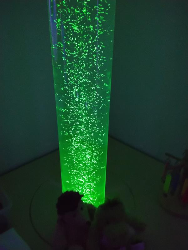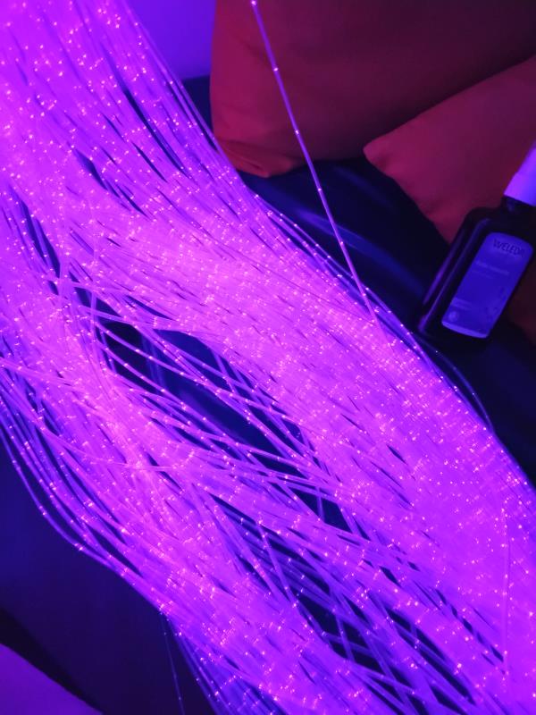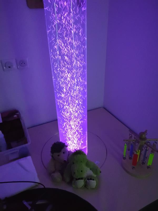 Nous avons la chance d'avoir un espace Snoezelen : Salle multisensorielle .